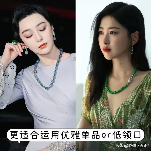 比较适合将其选择进行运用的单品,其实也是低领口的设计,又或者是设计款式很优雅的那一类。因为像翡翠玛瑙,又或者是宝石这样的首饰,它本身所展现出来的璀璨和夺目感就太明显了,那么你搭配的单品一定要在气质上与其是有着明显的契合度展现的,这一点还是比较关键的哟。